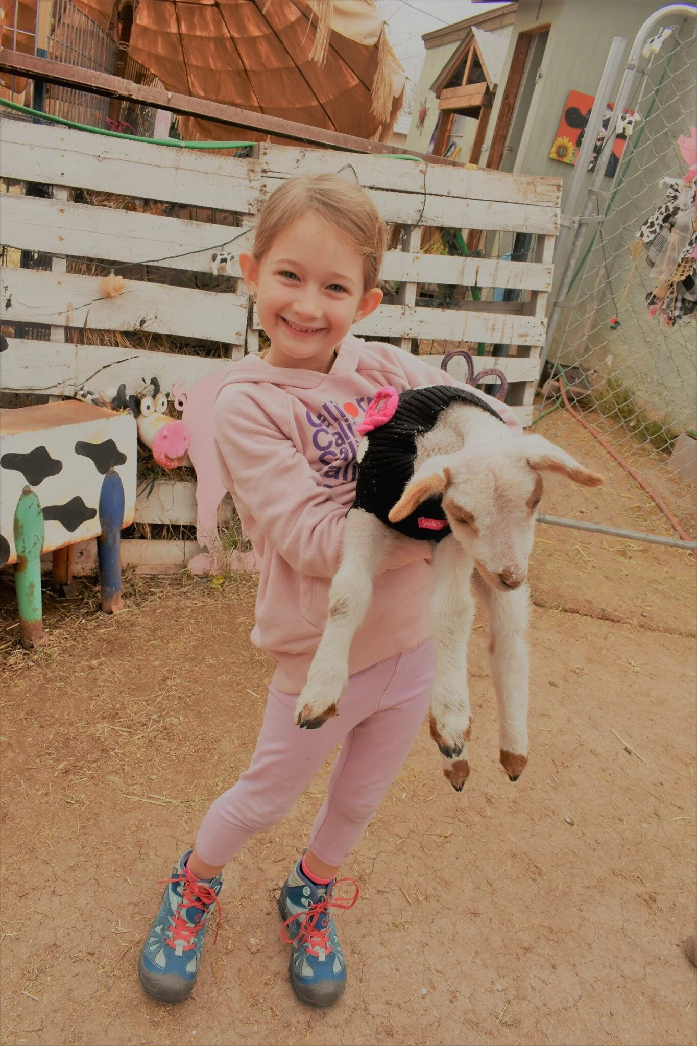 The sanctuary is home to many animals including cows, pigs, donkeys, horses, alpacas, goats, sheep, turkeys, chickens, rabbits, ducks, geese, dogs, cats, and bunnies!
